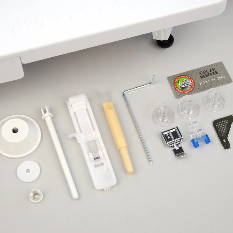 Электронные функции - шитье без педали, выбор положения иглы при остановке и регулировка скорости на корпусе позволят более тонко управлять процессом шитья.